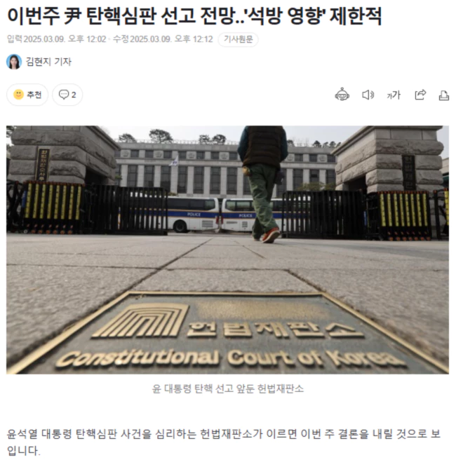 이번주 尹 탄핵심판 선고 전망.. '석방 영향' 제한적