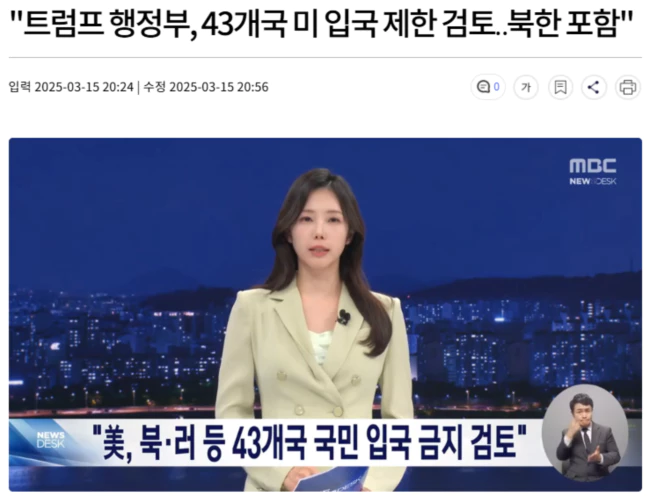 트럼프 행정부, 43개국 미 입국 제한 검토..북한 포함
