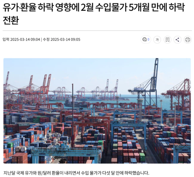 유가·환율 하락 영향에 2월 수입물가 5개월 만에 하락 전환