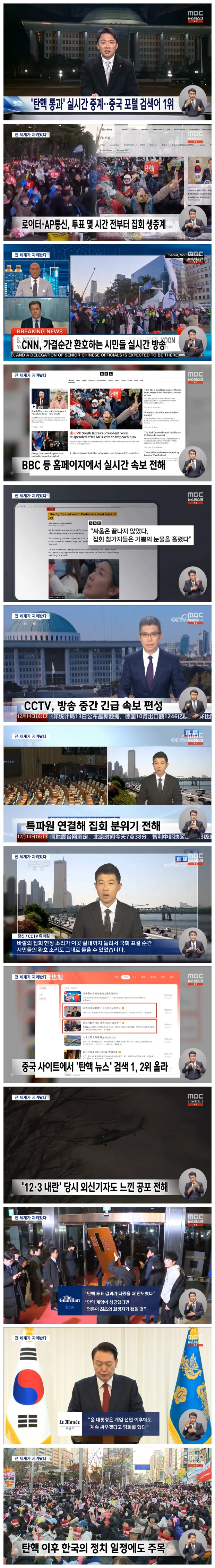 세계 각국의 언론들도 윤석열 대통령에 대한 탄핵소추안이 통과된 사실을 실시간으로 전했습니다.