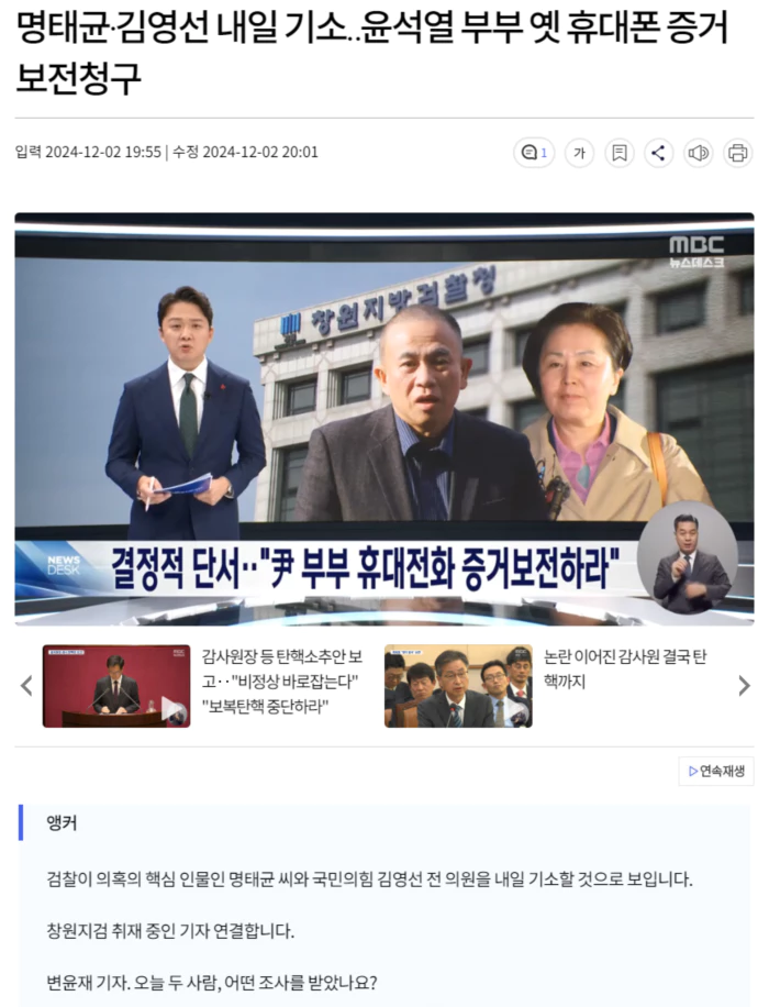 명태균·김영선 내일 기소.. 윤석열 부부 옛 휴대폰 증거보전청구