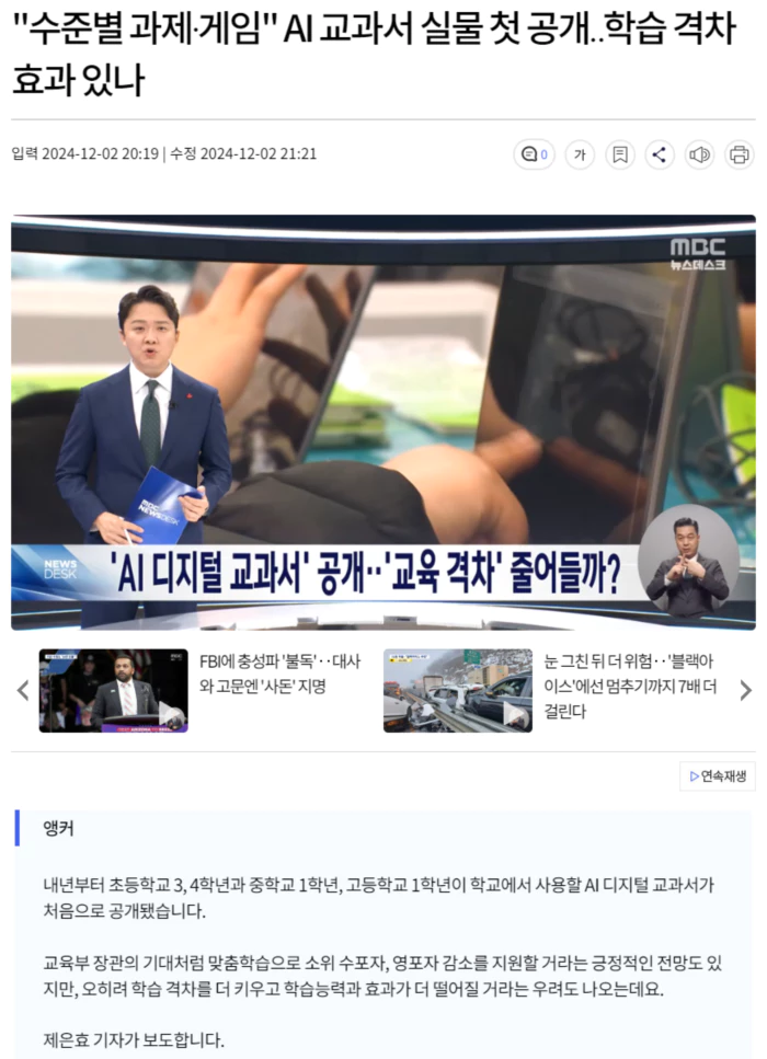 정부는 AI 교과서가 학습 동기를 유발해 학업성취도를 끌어올릴 거라 기대했지만 오히려 학습 격차를 키울 수 있단 우려도 나옵니다.