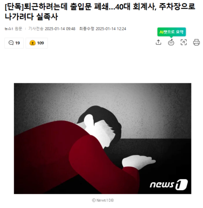 [단독]퇴근하려는데 출입문 폐쇄…40대 회계사, 주차장으로 나가려다 실족사 : 네이트 뉴스