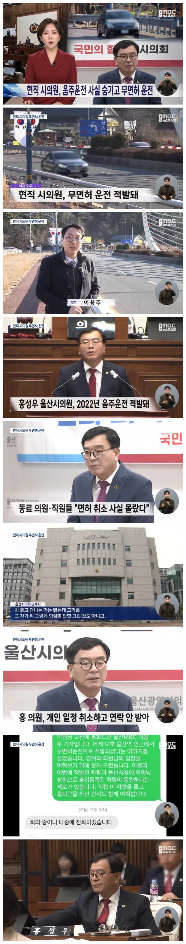 음주운전도 시의원 신분 상태에서 적발됐는데 이런 사실을 의회에도 알리지 않은 채, 최근까지도 면허 없이 차량을 이용해 의회를 출입해 온 것으로 알려졌습니다.