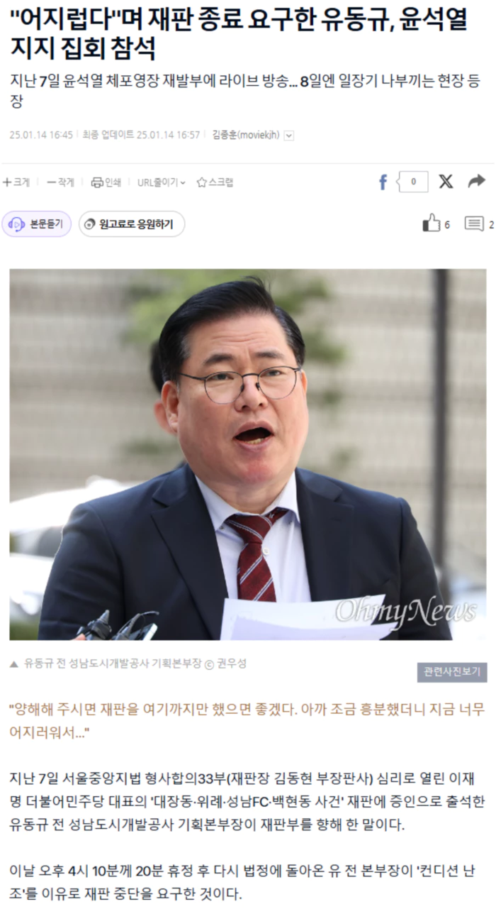 '어지럽다'던 유동규, 라이브 방송 켜고 윤석열 체포영장 재발부에 "내란" 주장