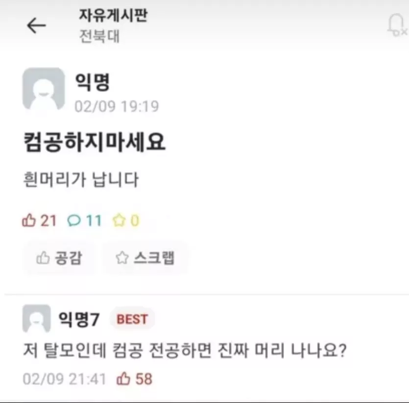 유머 분류 컴공하지마세요 흰머리가 납니다 작성자 정보 작성일 2025.03.18 16:24 컨텐츠 정보 7,441 조회 목록 본문 관련자료 댓글 0 등록된 댓글이 없습니다. 로그인한 회원만 댓글 등록이 가능합니다. 목록