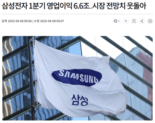삼성전자 1분기 영업이익 6.6조.. 시장 전망치 웃돌아