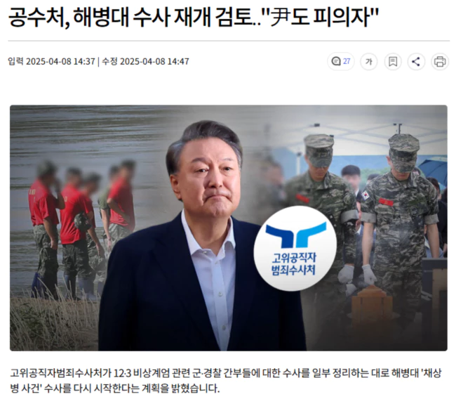 공수처, 해병대 수사 재개 검토.. "尹도 피의자"