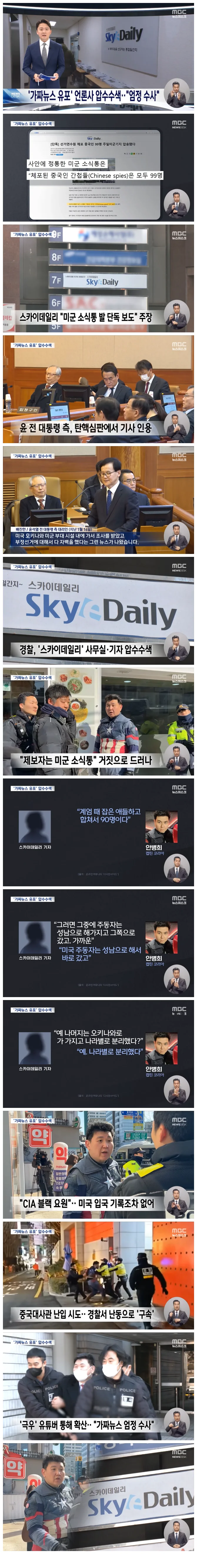 비상계엄 당시 선관위에서 중국인 간첩이 체포됐다는 근거 없는 기사를 보도한 인터넷언론 '스카이데일리'를 경찰이 압수수색했습니다.
