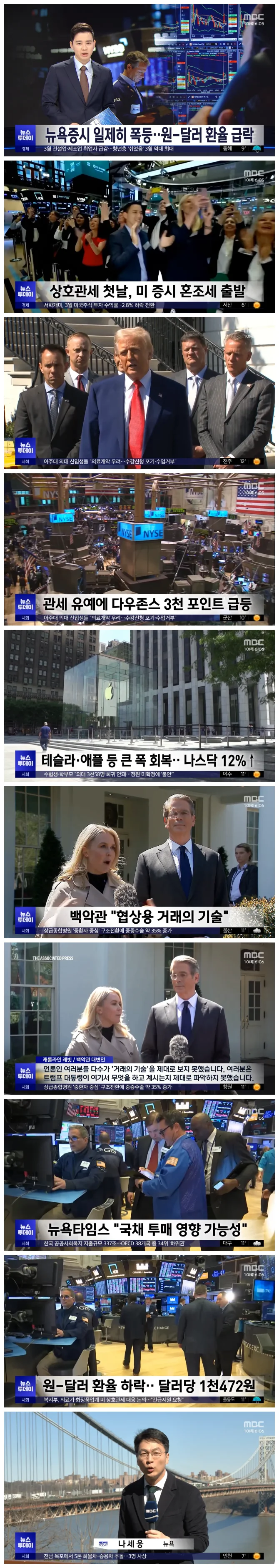트럼프 관셰 유예 소식, 뉴욕증시 일제히 폭등.. 원-달러 환율 급락