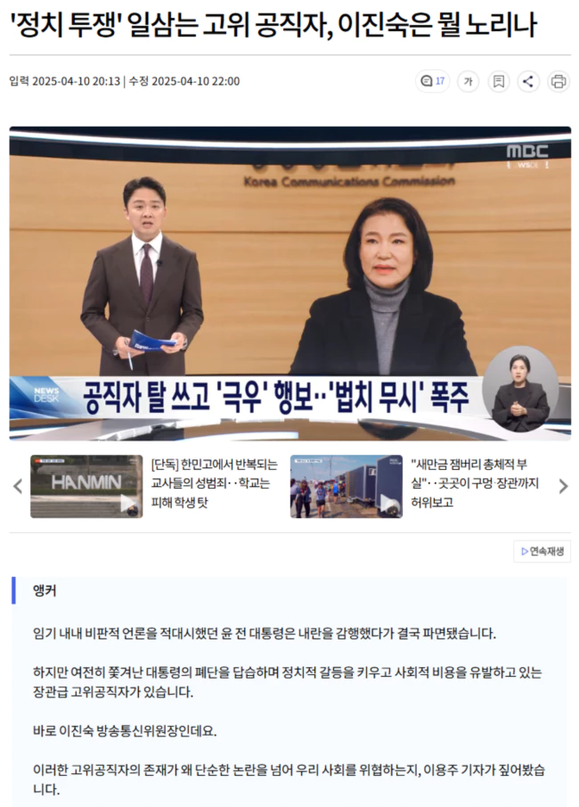 이진숙 위원장은 사법부도 안중에 없습니다.