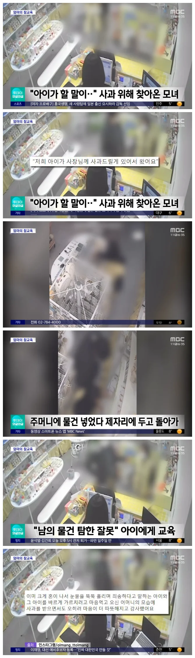 이어 "조금 전 아이가 어른들 몰래 가게 물건을 잠시 주머니에 넣었다가 다시 자리에 두고 집으로 향했다는 걸 뒤늦게 듣게 됐다"고 설명했습니다.