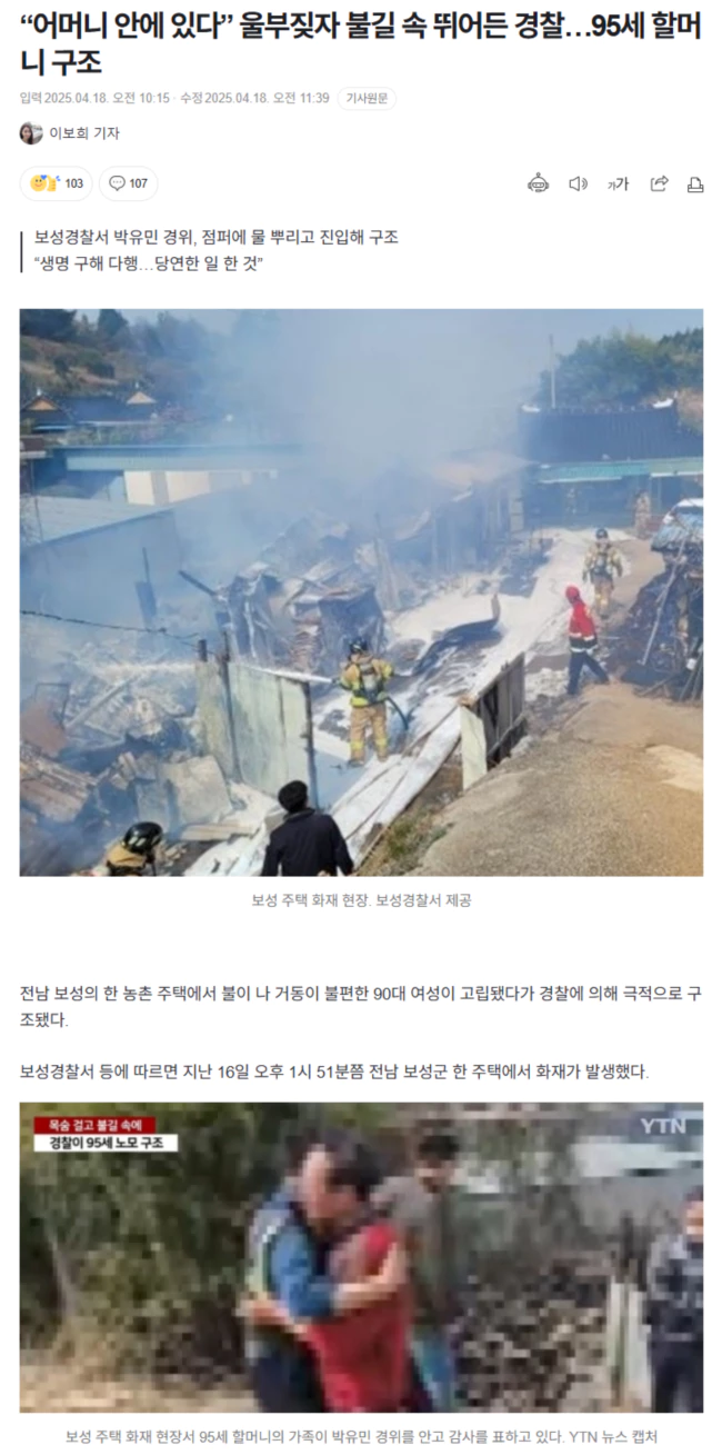 할머니 가족들은 목숨을 걸고 불길 속으로 뛰어든 박 경위에게 연신 감사함을 전하며 고마움의 눈물을 흘렸다.