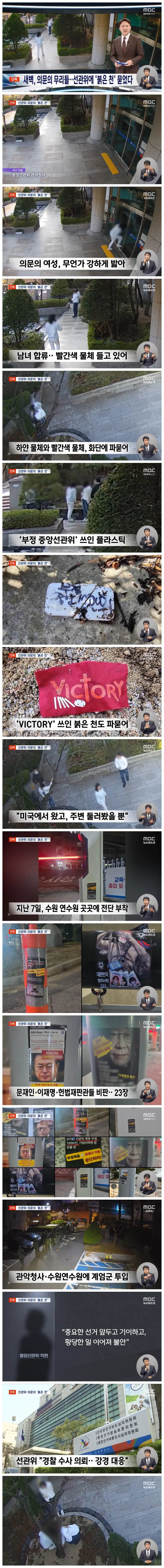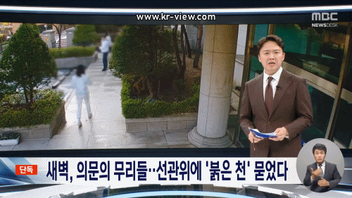 새벽, 의문의 무리들.. 선관위에 '붉은 천' 묻었다..