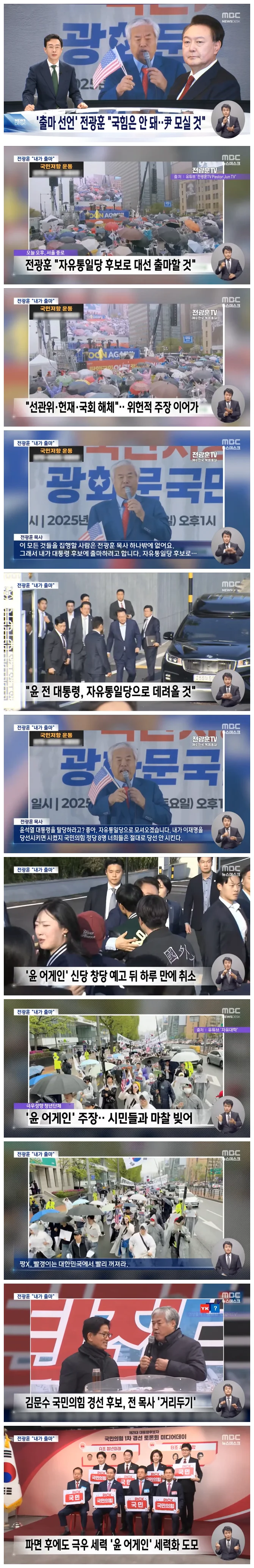 이런 가운데 그동안 극우 집회를 이끌어온 전광훈 목사가 본인이 직접 대선에 출마하겠다고 밝혔습니다.