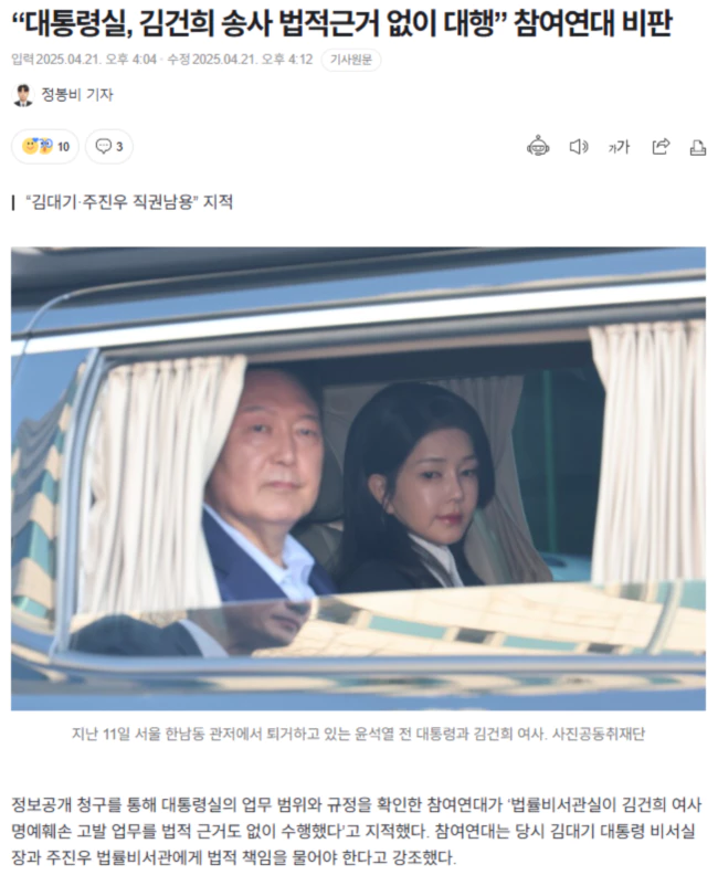 “대통령실, 김건희 송사 법적근거 없이 대행” 참여연대 비판