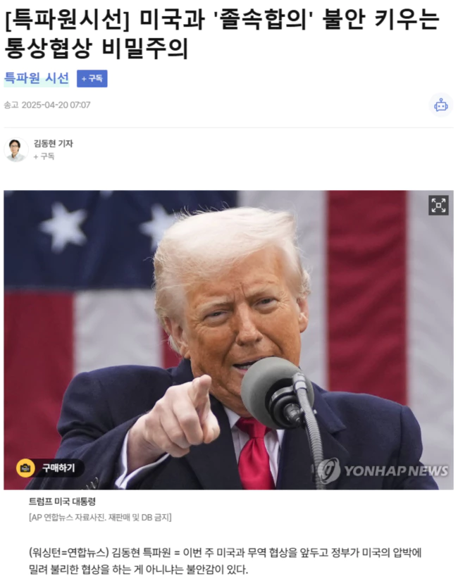 통상 당국자들의 선의를 의심하지는 않지만, 정부가 국민에게 협상 내용과 계획을 보다 명확하게 설명하지 않는 한 스콧 베선트 미국 재무부 장관이 각국에 가져오라고 한 "최선의 제안"이 미국에만 최선이 되는 게 아니냐는 우려가 커질 수 있다.