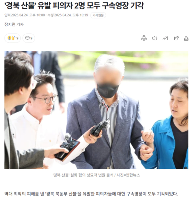 '경북 산불' 유발 피의자 2명 모두 구속영장 기각