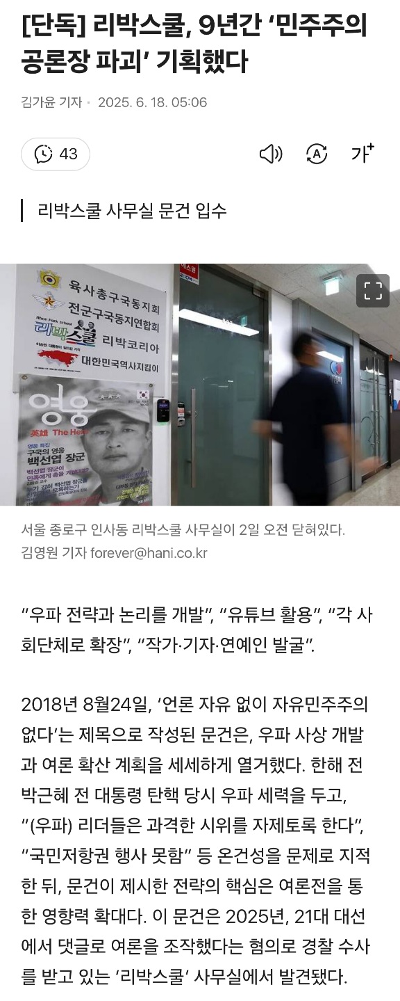 리박스쿨, 9년간 ‘민주주의 공론장 파괴’ 기획했다