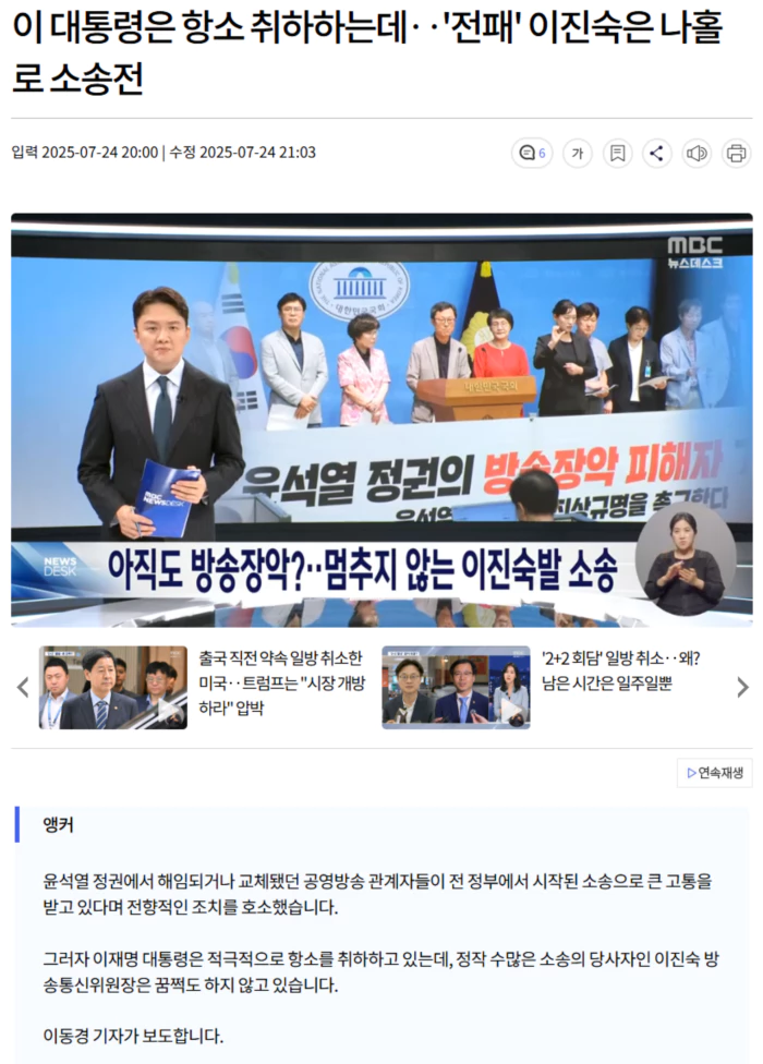 아직도 방송장악?.. 멈추지 않는 이진숙발 소송