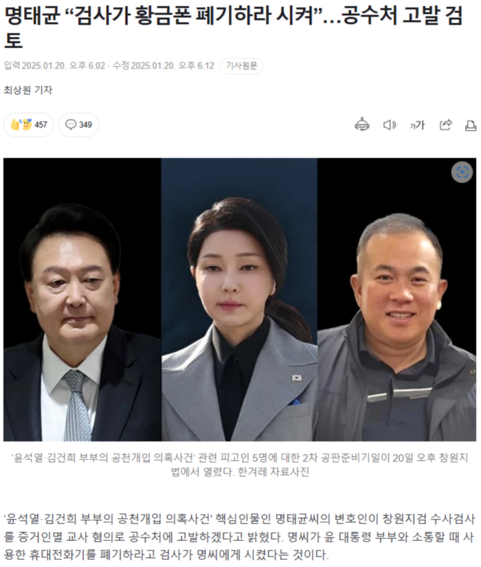 명태균 “검사가 황금폰 폐기하라 시켜”.. 공수처 고발 검토